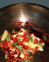 5、大蒜,干辣椒,葱,姜片,小米椒等,抄香
